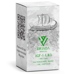 Hersteller: DRIADA MEDICALProdukt: IGF-1 LR3Inhalt: 1 vial 1mg IGF-1 LR3, 1 vial mit 1ml BAC..