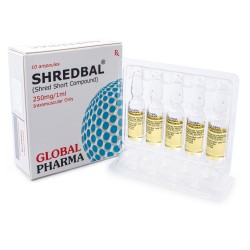 Manufacturer: Global PharmaProduct: SHREDBALContent: 10 ampoules a 250mg (100mg TestP, 75mg Tr..